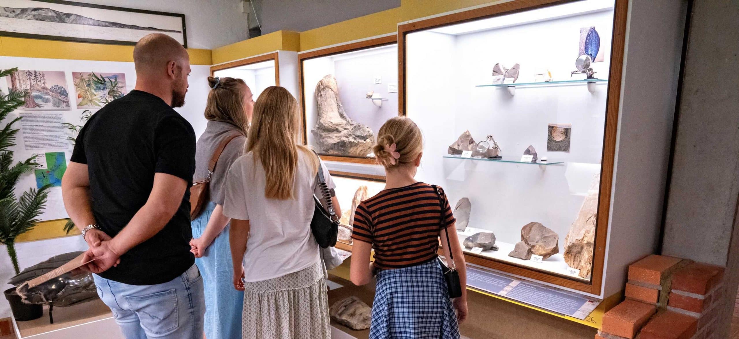 Neben den eiszeitlichen Tieren können Sie auch einen 4 Meter langen Dinosaurier sehen, der zwischen einigen der vielen großen Steine steht, die alle für ihre geologische Zeitperiode repräsentativ sind. Viele der Steine wurden an den Ufern von Fur gesammelt, und Sie haben die Möglichkeit, ähnliche Steine am Strand von Fur zu erkennen und zu sammeln und ein Stück Geschichte mit nach Hause zu nehmen.